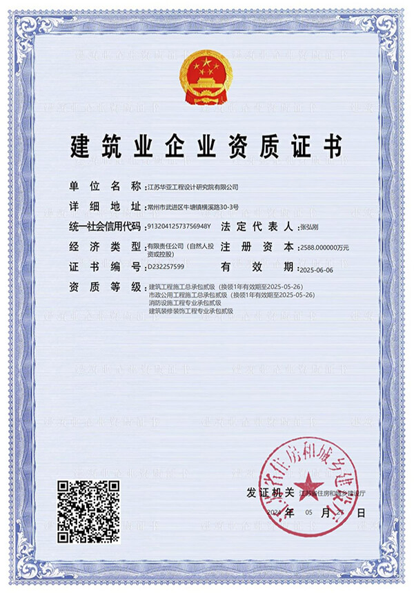 2020年06月獲得裝修裝飾工程專業(yè)承包貳級資質;2020年12月獲得市政行業(yè)(道路工程、橋梁工程、給水工程、排水工程)專業(yè)乙級設計資質。